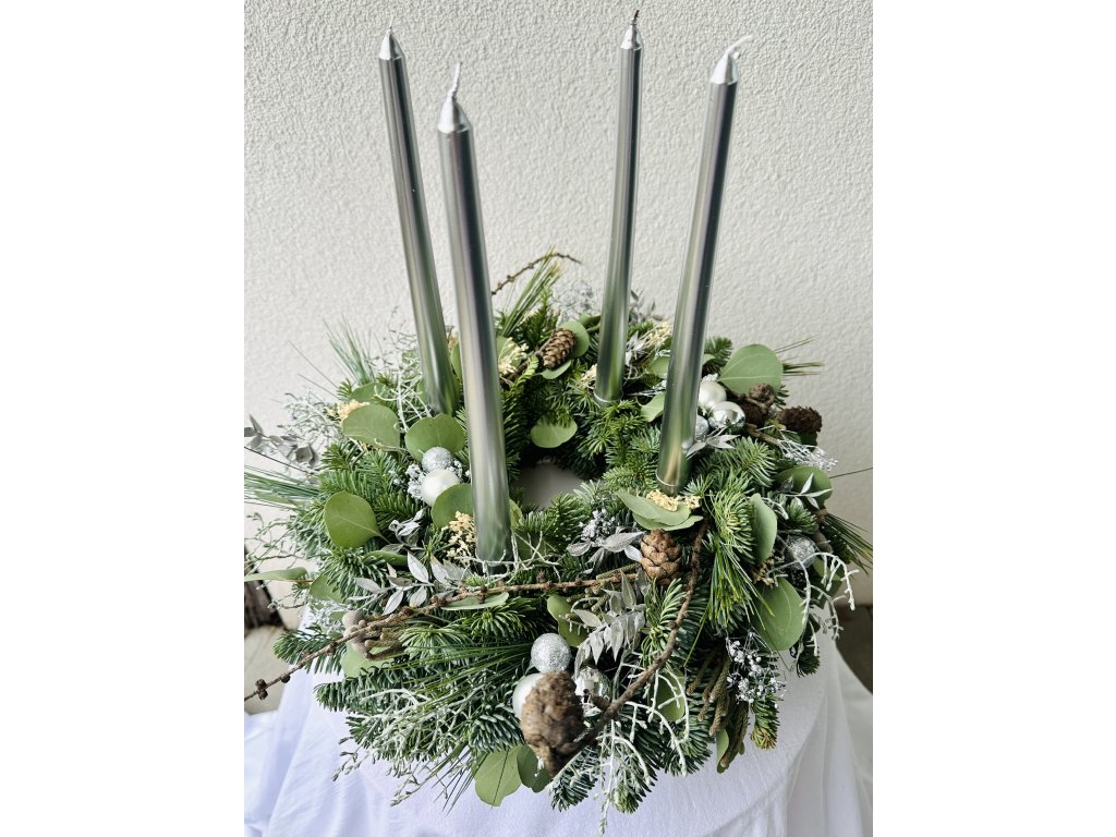 Věnec vydrží dlouho krásný, jelikož je tvořen i ze stabilizovaného eukalyptu, který nemění svůj tvar ani barvu. Je však tvořen i z eukalyptu čerstvého.