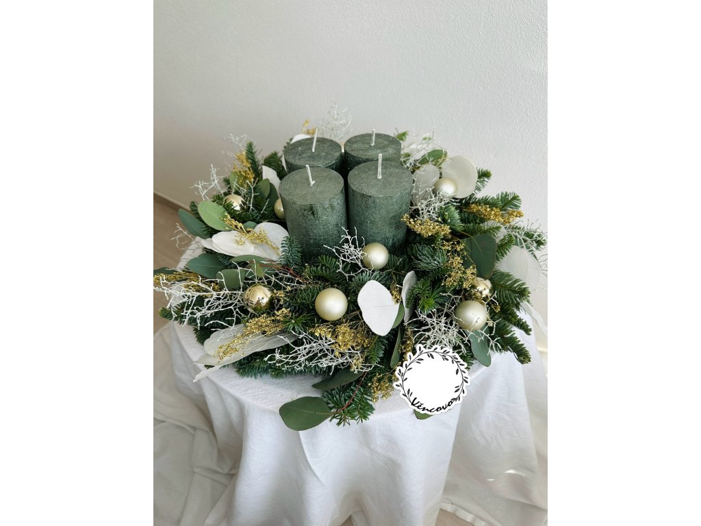Věnec vydrží dlouho krásný, jelikož je tvořen i ze stabilizovaného eukalyptu, který nemění svůj tvar ani barvu. Je však tvořen i z eukalyptu čerstvého.
