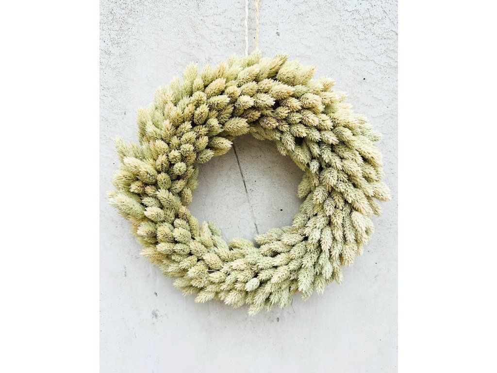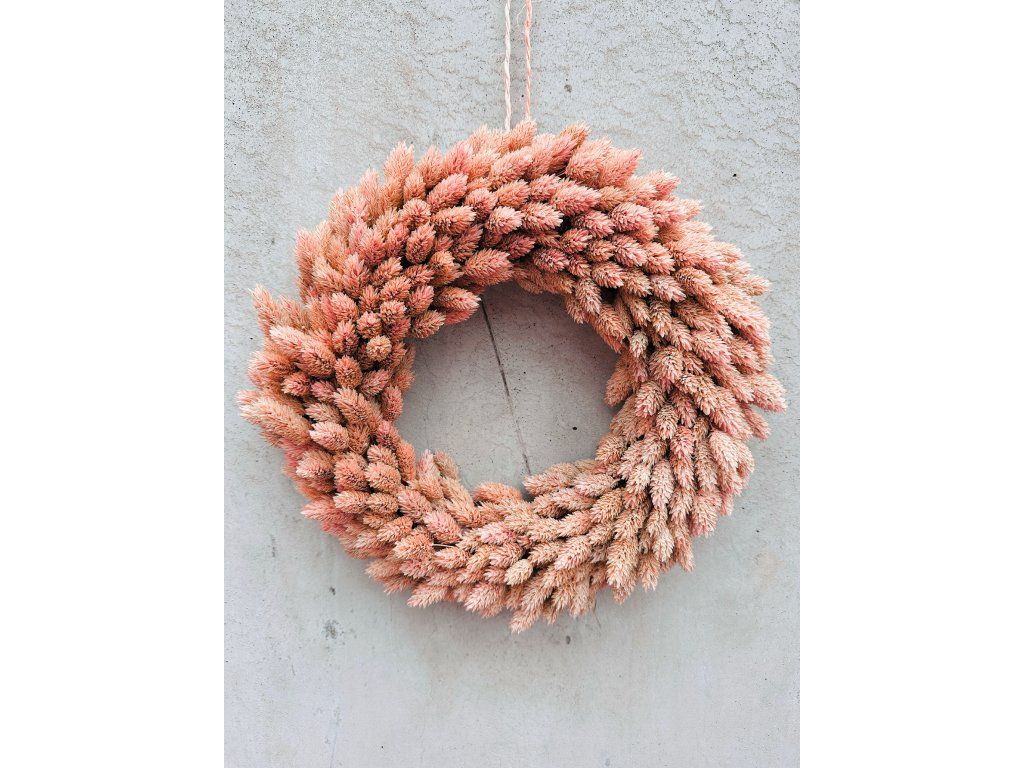 Věnec je tvořen ze sušených materiálů.